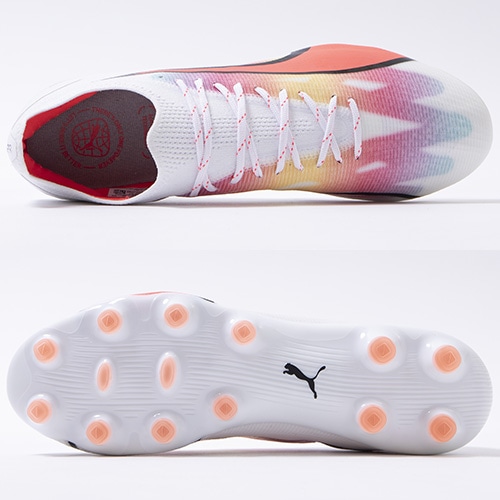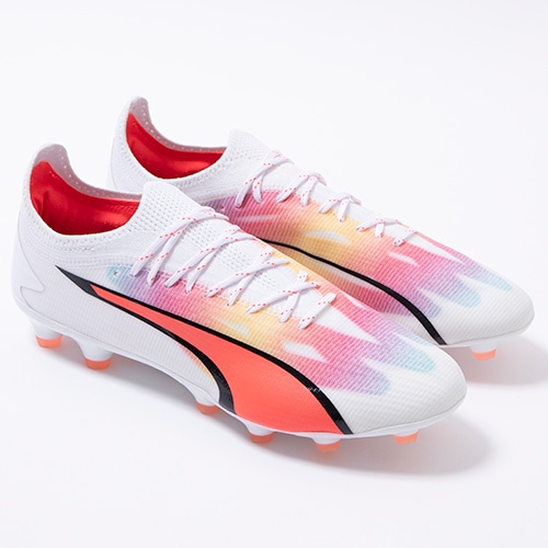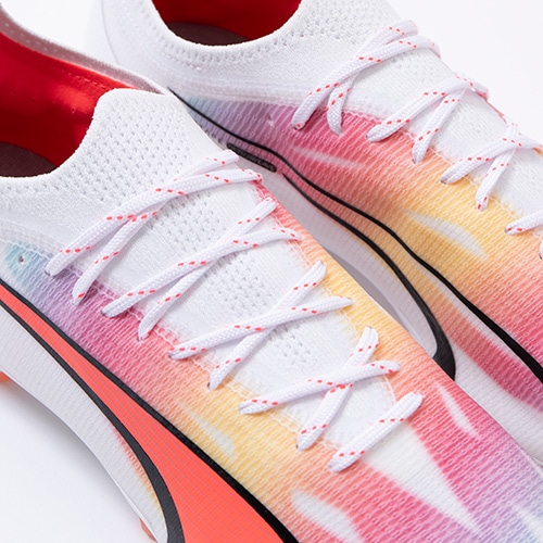 - 2023年7月6日(木)発売。2023年秋の新作コレクション『BREAK THROUGH(ブレイクスルー) PACK』が登場。電光石火、稲妻スピード。稲妻のようにピッチを駆けるプレーヤーのための超軽量モデル『ULTRA(ウルトラ)』がアッパーに「PWRTAPE」を搭載してアップデート。アルティメットモデルHG(ハードグラウンド)/AG(アーティフィシャルグラス)対応スパイク。