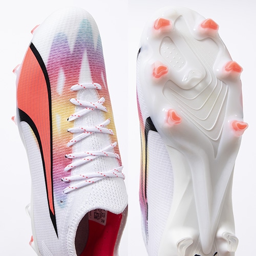 - 2023年7月6日(木)発売。2023年秋の新作コレクション『BREAK THROUGH(ブレイクスルー) PACK』が登場。電光石火、稲妻スピード。稲妻のようにピッチを駆けるプレーヤーのための超軽量モデル『ULTRA(ウルトラ)』がアッパーに「PWRTAPE」を搭載してアップデート。アルティメットモデルFG(ファームグラウンド)/AG(アーティフィシャルグラス)対応トップモデルのウィメンズ向けスパイク。