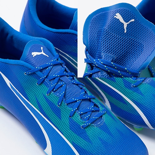 ●速さを追求して生まれたPUMA独自の新素材ULTRAWEAVE(ウルトラウィーブ)をアッパーに採用。従来のウーブン素材に比べ、圧倒的な軽さを実現。さらに、柔軟性にも優れるこの素材はアッパーと足の一体感を高めその効果を最大限に引き出し、その軽さと柔軟性が今までにないスピードを生み出します。独立型のシュータン構造で着脱がスムーズ。
