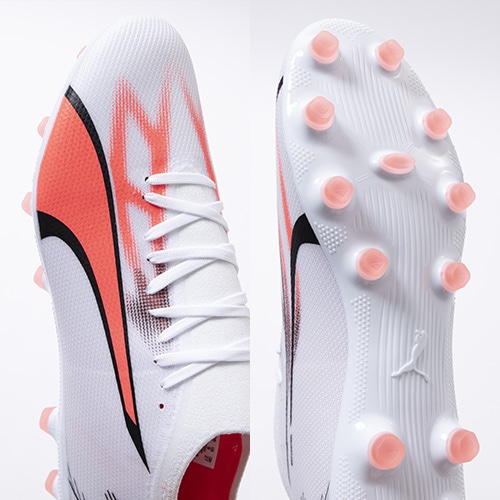 - 2023年7月6日(木)発売。2023年秋の新作コレクション『BREAK THROUGH(ブレイクスルー) PACK』が登場。電光石火、稲妻スピード。稲妻のようにピッチを駆けるプレーヤーのための超軽量モデル『ULTRA(ウルトラ)』がアッパーのデザインをアップデート。マッチモデルHG(ハードグラウンド)/AG(アーティフィシャルグラス)対応スパイク。