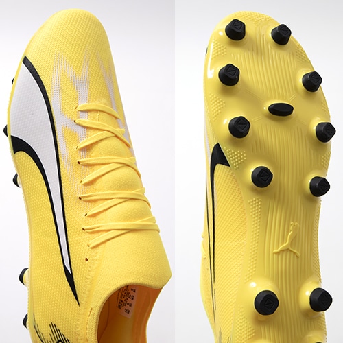 - 2023年11月16日(木)発売。冬の新色コレクション『VOLTAGE(ボルテージ)PACK』が登場。電光石火、稲妻スピード。稲妻のようにピッチを駆けるプレーヤーのための超軽量モデル『ULTRA(ウルトラ)』がアッパーのデザインをアップデート。マッチモデルHG(ハードグラウンド)/AG(アーティフィシャルグラス)対応スパイク。