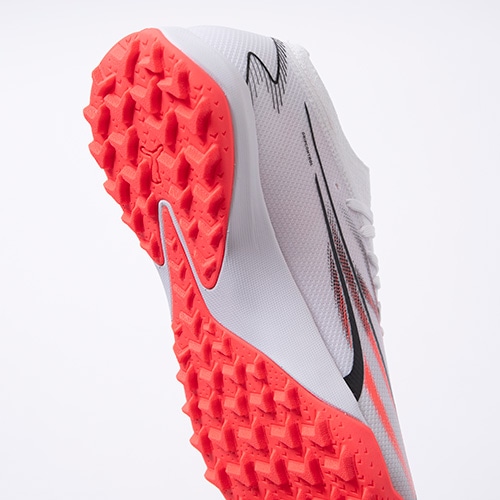 ●マイクロファイバーで形成されるグリップアッパー素材で全面を覆うことで、スピードに乗った際のボールコントロール性を高めるだけでなく、シューズの保形性をサポートし、且つ耐久性もアップ。また濡れたピッチでの水の浸透を軽減する効果も発揮。
