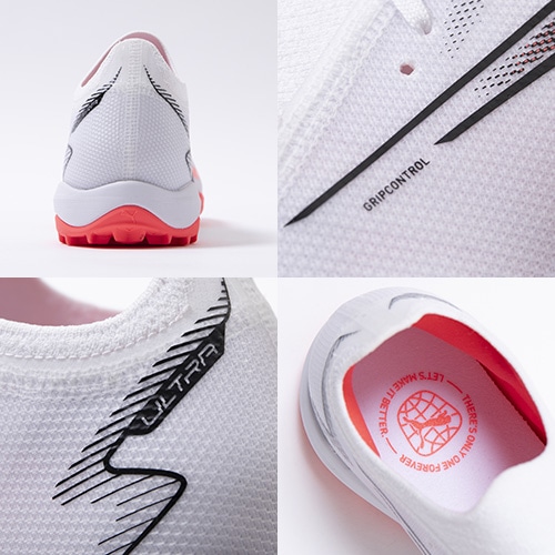 - 2023年7月6日(木)発売。2023年秋の新作コレクション『BREAK THROUGH(ブレイクスルー) PACK』が登場。電光石火、稲妻スピード。稲妻のようにピッチを駆けるプレーヤーのための超軽量モデル『ULTRA(ウルトラ)』がアッパーのデザインをアップデート。マッチモデルのTT(ターフトレーニング)対応トレーニングシューズ。