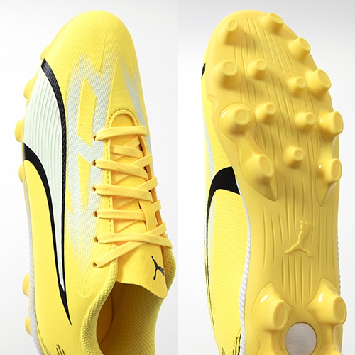- 2023年11月16日(木)発売。冬の新色コレクション『VOLTAGE(ボルテージ)PACK』が登場。電光石火、稲妻スピード。稲妻のようにピッチを駆けるプレーヤーのための超軽量モデル『ULTRA(ウルトラ)』がアッパーのデザインをアップデート。プレイモデルHG(ハードグラウンド)/AG(アーティフィシャルグラス)対応ジュニア用スパイク。