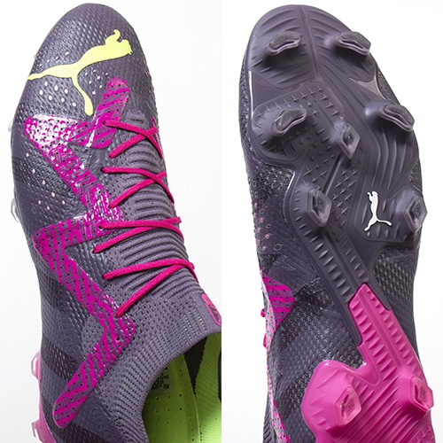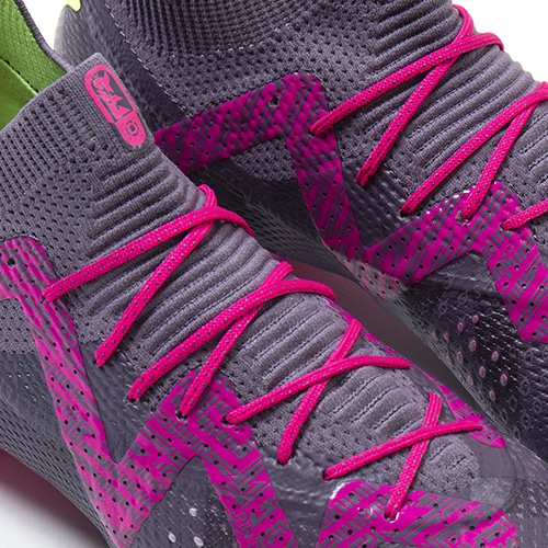 ゴールキーパーのためだけに作られた限定モデル。全てのアイテムに同じ特徴的なグラフィックを採用した「GK(ゴールキーパー)」コレクションが登場。縦横無尽、爆速ステップ!すべてのプレイヤーのあと一歩の速さを追求した「FUTURE(フューチャー)」のアルティメットモデルFG(ファームグラウンド)/AG(アーティフィシャルグラス)対応スパイク。