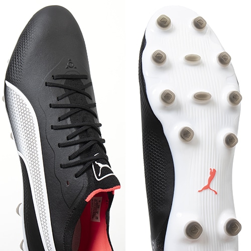 - 2023年秋冬モデルNEWカラーが登場。精密一閃、高機動コントロール。レザーのフィット感やボールタッチはそのままに、機動性を兼ね備えた「PUMA KING(プーマ キング)」のアルティメットモデルHG(ハードグラウンド)/AG(アーティフィシャルグラス)対応スパイク。