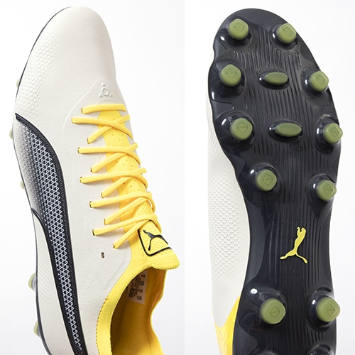 - 2023年11月16日(木)発売。冬の新色コレクション『VOLTAGE(ボルテージ)PACK』が登場。精密一閃、高機動コントロール。レザーのフィット感やボールタッチはそのままに、機動性を兼ね備えた「PUMA KING(プーマ キング)」のアルティメットモデルHG(ハードグラウンド)/AG(アーティフィシャルグラス)対応スパイク。