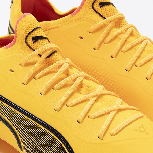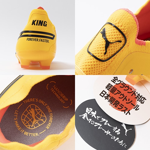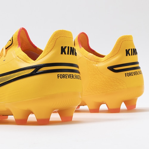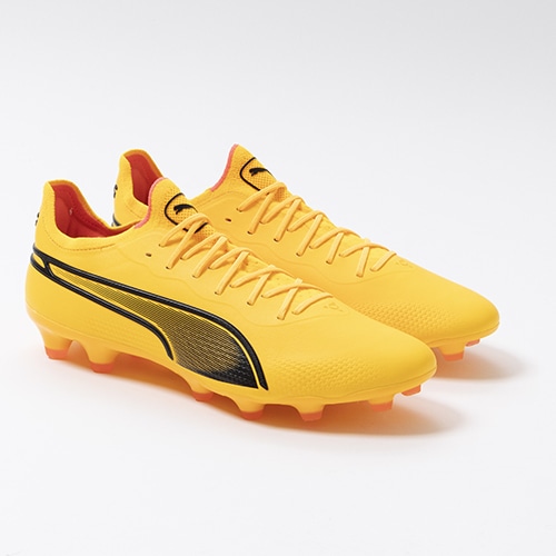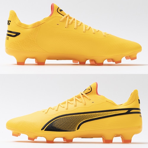 精密一閃、高機動コントロール。レザーのフィット感やボールタッチはそのままに、機動性を兼ね備えた「PUMA KING(プーマ キング)」のアルティメットモデルHG(ハードグラウンド)/AG(アーティフィシャルグラス)対応スパイク。