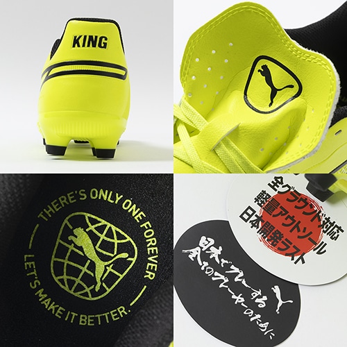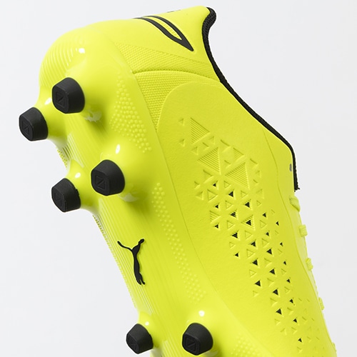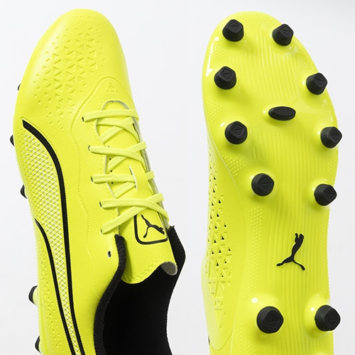 精密一閃、高機動コントロール。レザーのフィット感やボールタッチはそのままに、機動性を兼ね備えた「PUMA KING(プーマ キング)」のマッチモデルHG(ハードグラウンド)/AG(アーティフィシャルグラス)対応スパイク。
