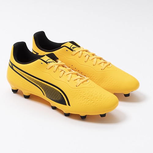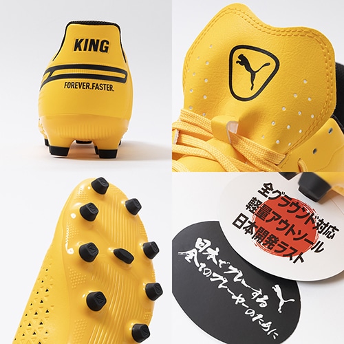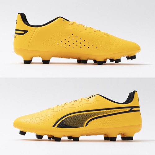 精密一閃、高機動コントロール。レザーのフィット感やボールタッチはそのままに、機動性を兼ね備えた「PUMA KING(プーマ キング)」のマッチモデルHG(ハードグラウンド)/AG(アーティフィシャルグラス)対応スパイク。