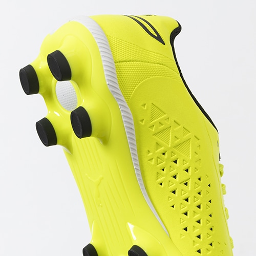 ●日本でプレーする全てのプレーヤーの為に開発されたジュニア専用アウトソール。台形のスタッドベースメントで安定性と強度をもたらす。EVAクッションミッドソールを搭載し足への負担を軽減。