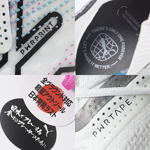 ●PWRTAPE(パワーテープ)は樹脂ベースで作られたPUMA独自のサポート素材。軽量で強度と柔軟性に優れるこの素材は必要な個所に圧着で配置することが可能。今回は人間工学に基づき幾度もの試験を重ね、さらにグレードアップ。最も効果的な配置で足ブレを抑え、プレイヤーの足の動きを安定させてあらゆる方向へのステップをサポート。