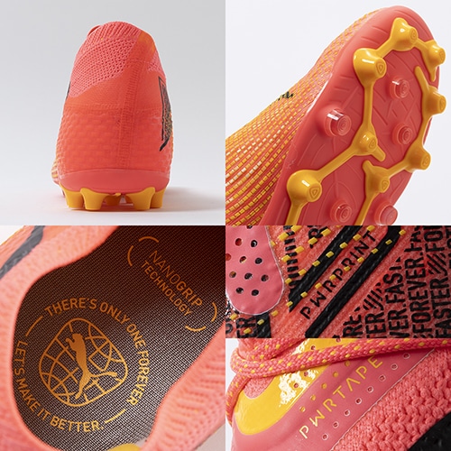 ●軽量のエンジニアードメッシュで構成され、ボールコントロール性、キックサポートを高めるPUMA独自のPWRPRINT(パワープリント)。二層構造で搭載され、より高度なフィット感を実現し、ドリブルやパス、正確なボールコントロールに最適な効果を発揮する。