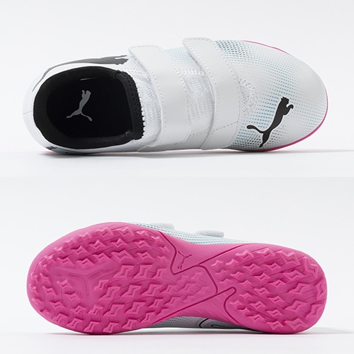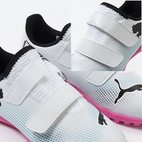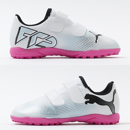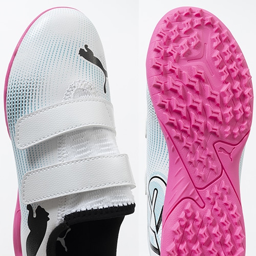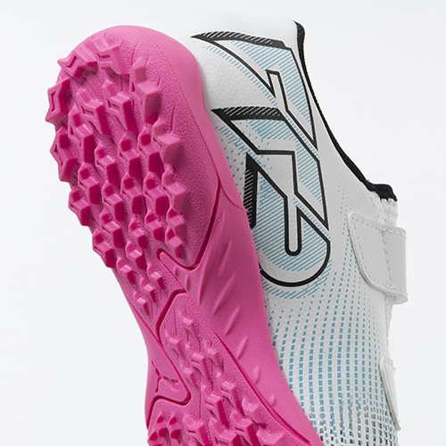 違いを生み出すフィット感で新次元のプレーを。プレイメーカーのために進化した「FUTURE 7(フューチャー セブン)」のプレイモデルTT(ターフトレーニング)対応ジュニア用トレーニングシューズのベルクロタイプ。