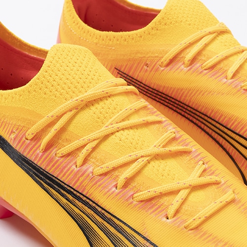 電光石火、稲妻スピード。稲妻のようにピッチを駆けるプレーヤーのための超軽量モデル『ULTRA(ウルトラ)』がアッパーに「PWRTAPE」を搭載してアップデート。アルティメットモデルFG(ファームグラウンド)/AG(アーティフィシャルグラス)対応スパイク。