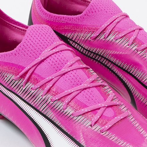 電光石火、稲妻スピード。稲妻のようにピッチを駆けるプレーヤーのための超軽量モデル『ULTRA(ウルトラ)』がアッパーに「PWRTAPE」を搭載してアップデート。アルティメットモデルHG(ハードグラウンド)/AG(アーティフィシャルグラス)対応スパイク。