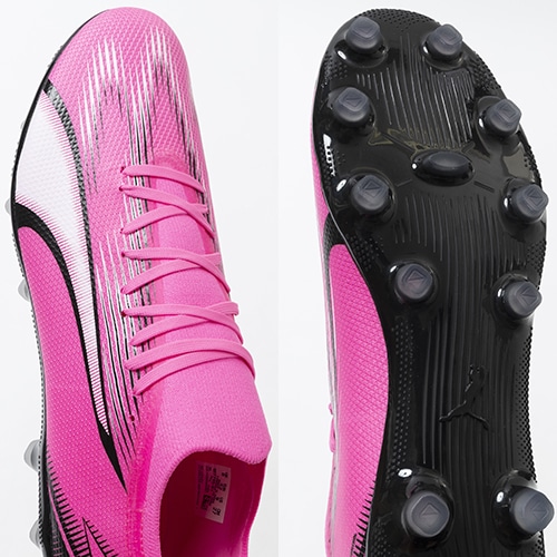 電光石火、稲妻スピード。稲妻のようにピッチを駆けるプレーヤーのための超軽量モデル『ULTRA(ウルトラ)』がアッパーのデザインをアップデート。マッチモデルHG(ハードグラウンド)/AG(アーティフィシャルグラス)対応スパイク。