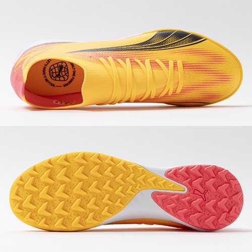 電光石火、稲妻スピード。稲妻のようにピッチを駆けるプレーヤーのための超軽量モデル『ULTRA(ウルトラ)』がアッパーのデザインをアップデート。マッチモデルのTT(ターフトレーニング)対応トレーニングシューズ。