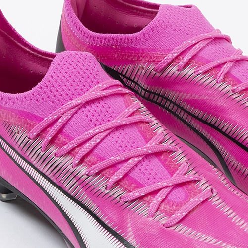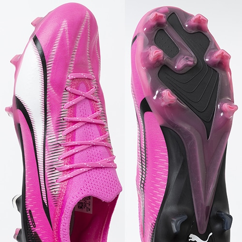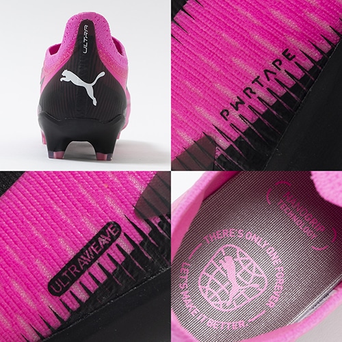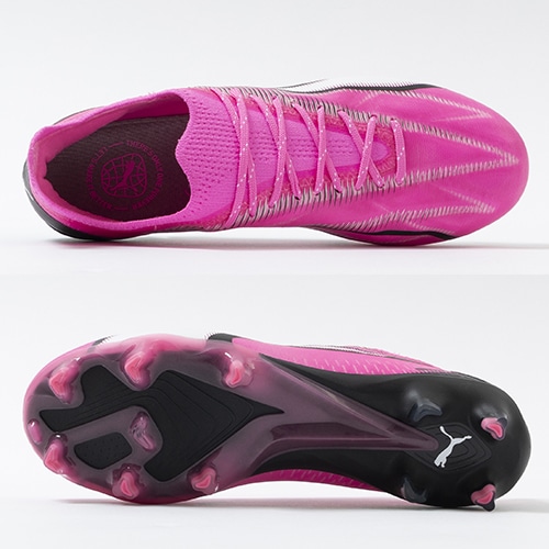 電光石火、稲妻スピード。稲妻のようにピッチを駆けるプレーヤーのための超軽量モデル『ULTRA(ウルトラ)』がアッパーに「PWRTAPE」を搭載してアップデート。アルティメットモデルFG(ファームグラウンド)/AG(アーティフィシャルグラス)対応トップモデルのウィメンズ向けスパイク。