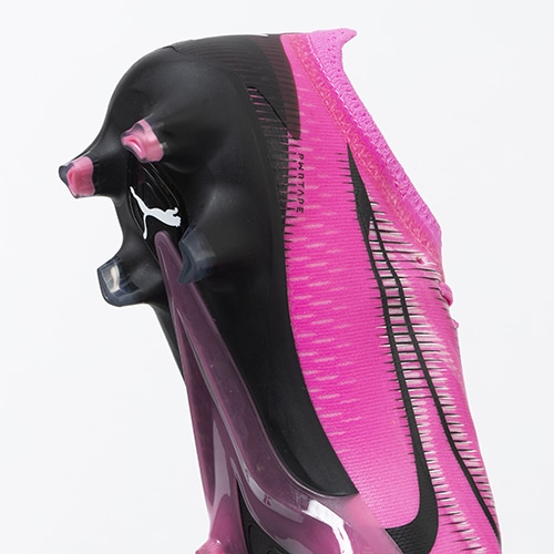 ●樹脂ベースで作られたPUMA独自のサポート素材PWRTAPE(パワーテープ)。軽量かつ柔軟性のあるこの素材は、必要な箇所に圧着で配置することが可能。今回は足の甲の骨格構造をベースに配置し、密着したアッパーをスムーズに屈曲させることで蹴り出し時に反発し鋭い動きを生み出す。また、力の掛かりやすい部分に配置をすることで、アッパーの保形性もサポート。