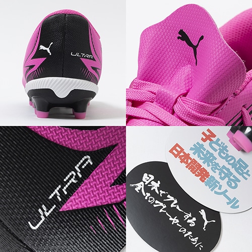 電光石火、稲妻スピード。稲妻のようにピッチを駆けるプレーヤーのための超軽量モデル『ULTRA(ウルトラ)』がアッパーのデザインをアップデート。プレイモデルHG(ハードグラウンド)/AG(アーティフィシャルグラス)対応ジュニア用スパイク。