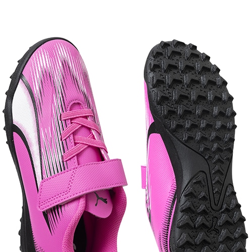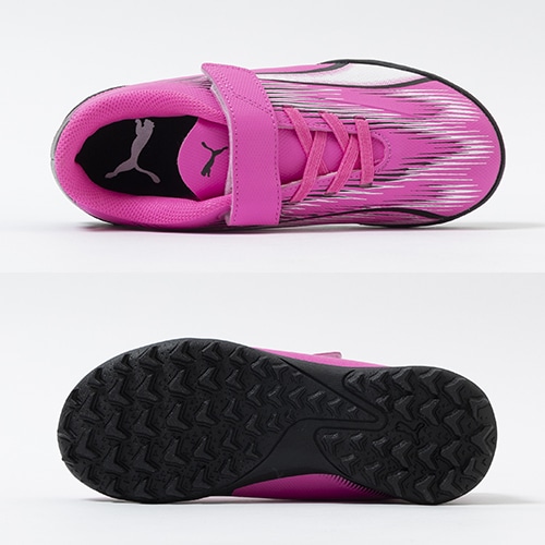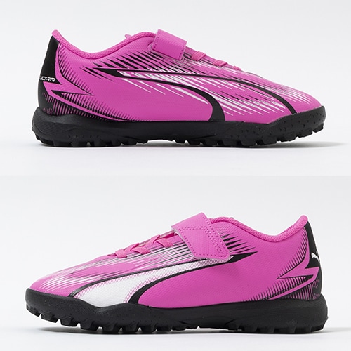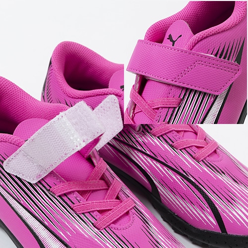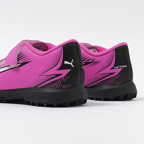 電光石火、稲妻スピード。稲妻のようにピッチを駆けるプレーヤーのための超軽量モデル『ULTRA(ウルトラ)』がアッパーのデザインをアップデート。プレイモデルのTT(ターフトレーニング)対応ジュニア用トレーニングシューズのベルクロタイプ。