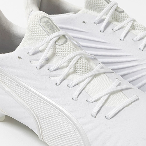 更なるボールコントロールと快適性を追求しアップデートされた新作モデルが登場。KINGの伝統と現代フットボールに適応する革新を兼ね備え、新しく生まれ変わったPUMA「KING(キング)」のアルティメットモデルFG(ファームグラウンド)/AG(アーティフィシャルグラス)対応スパイク。