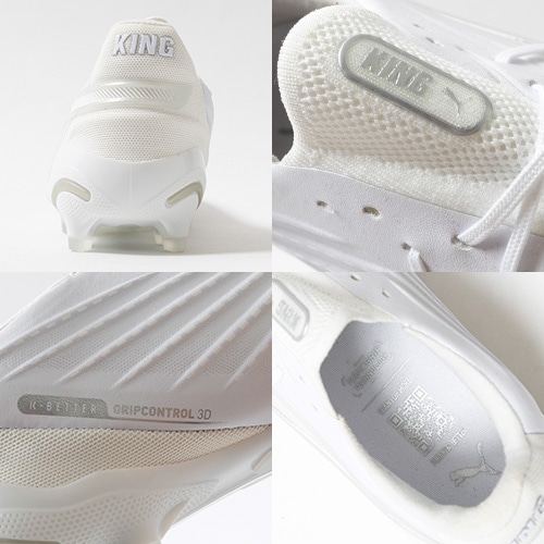 ●従来のKINGから更なるボールコントロール性を高める為、インサイド面のアッパーに凹凸の3D加工とボールグリップの為「GRIPCONTROL 3D」のPUプリントを搭載。中足部の甲周りを「EVO KNIT SOCK」構造でフィットさせることで、横の動きへのサポートを強め、前方向への屈曲時足とシューズの密着度をあげ推進力を高める効果を発揮。90分間いかなる場面でも高度のコントロールと精密なパスで好機を演出する。
