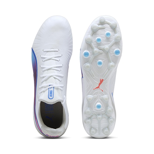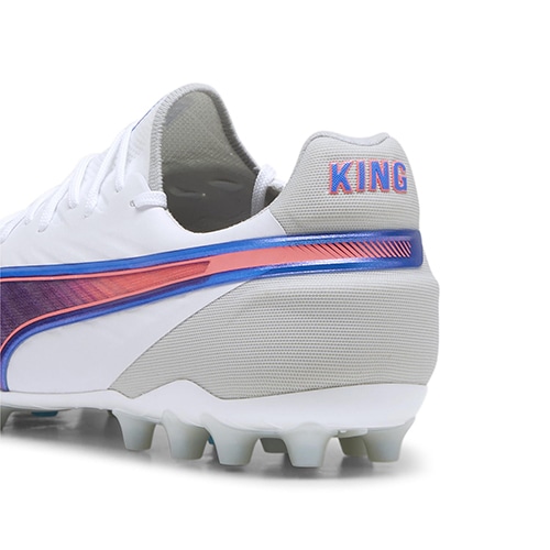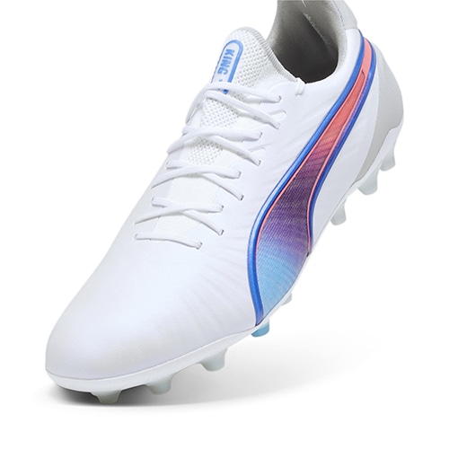 更なるボールコントロールと快適性を追求しアップデートされた新作モデルが登場。KINGの伝統と現代フットボールに適応する革新を兼ね備え、新しく生まれ変わったPUMA「KING(キング)」のアルティメットモデルMG(マルチグラウンド)対応スパイク。
