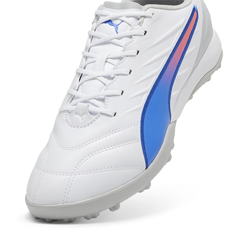 更なるボールコントロールと快適性を追求したモデルが登場。KINGの伝統と現代フットボールに適応する革新を兼ね備え、新しく生まれ変わったPUMA「KING(キング)」のプロモデルTT(ターフトレーニング)対応トレーニングシューズ。