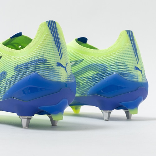 細心の調整を行ったF1カーのスピードと感覚を足元で体験する。アップデートされたPUMA『ULTRA(ウルトラ) 5』アルティメットモデルSG(ソフトグラウンド)対応ミックスソール取り換え式スパイク。