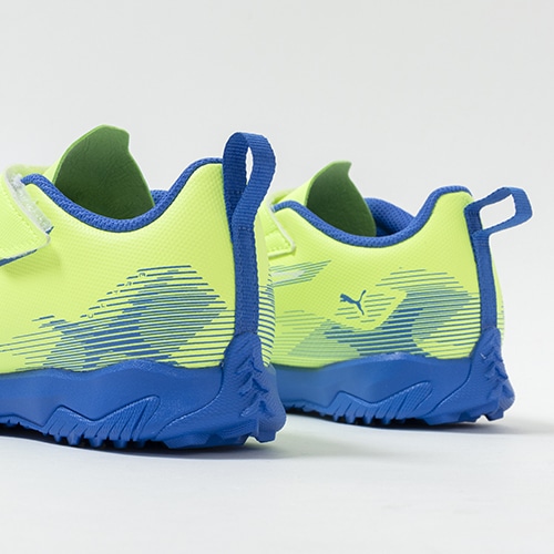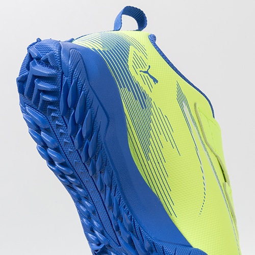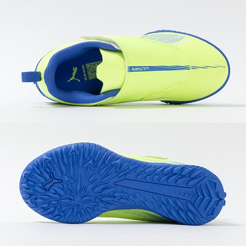 細心の調整を行ったF1カーのスピードと感覚を足元で体験する。アップデートされたPUMA『ULTRA(ウルトラ) 5』のプレイモデルTT(ターフトレーニング)対応ジュニア用トレーニングシューズのベルクロタイプ。