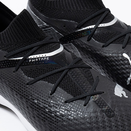 ●PWRTAPE(パワーテープ)は樹脂ベースで作られたPUMA独自のサポート素材。軽量で強度と柔軟性に優れるこの素材は必要な個所に圧着で配置することが可能。今回は人間工学に基づき幾度もの試験を重ね、さらにグレードアップ。最も効果的な配置で足ブレを抑え、プレイヤーの足の動きを安定させてあらゆる方向へのステップをサポート。