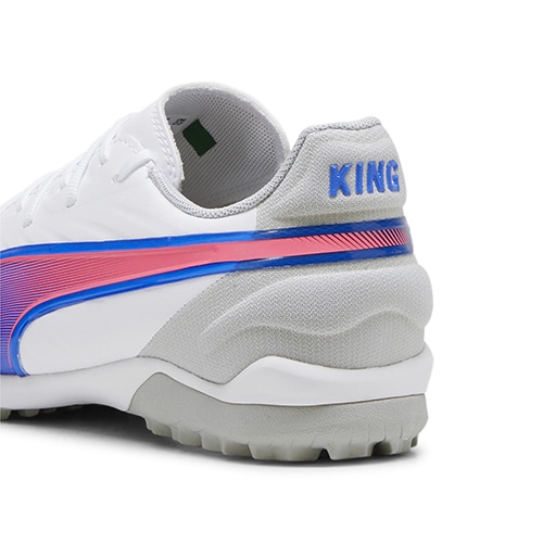 更なるボールコントロールと快適性を追求しアップデートされた新作モデルが登場。KINGの伝統と現代フットボールに適応する革新を兼ね備え、新しく生まれ変わったPUMA「KING(キング)」のマッチモデルTT(ターフトレーニング)対応ジュニア用トレーニングシューズ。