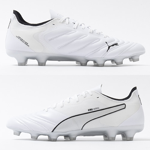 - 2024年7月22日(月)発売。世界基準。日本仕様。究極のフィット感を追求し辿り着いた日本企画のスパイクPUMA『KING MIRAI(キングミライ)』に2代目のNEWモデル『KING MIRAI(キングミライ) 2』が登場。アルティメットモデルHG(ハードグラウンド)/AG(アーティフィシャルグラス)対応スパイク。