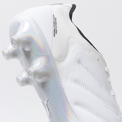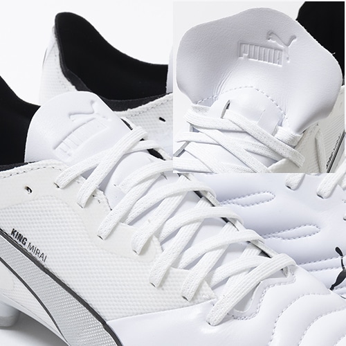 ●天然皮革のように柔らかくて軽い素材のK-BETTER UPPERをステッチ加工などKING MIRAI用にアレンジ。より繊細なボールタッチを感じられるように薄くしつつ、アッパーとライニングの間にパディングを施し、ソフトなボールタッチと履き心地を実現。