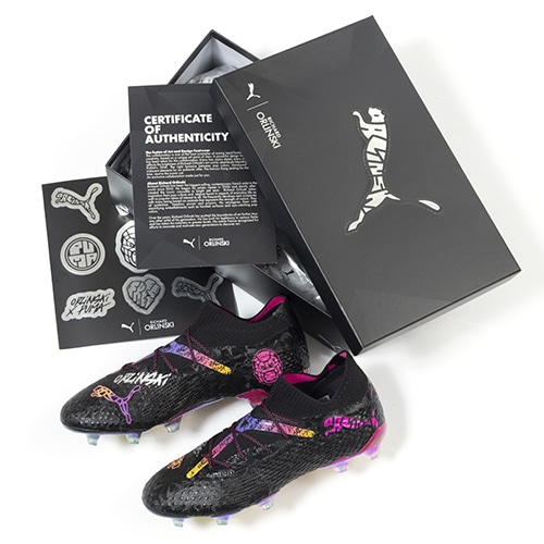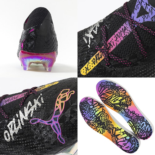フットボールはアートであり、そのアートを表現するのは、そのシューズであるということを表現。独創的なプレーをサポートするフューチャーと、独創的なアートが組み合わさったスペシャルな一足。