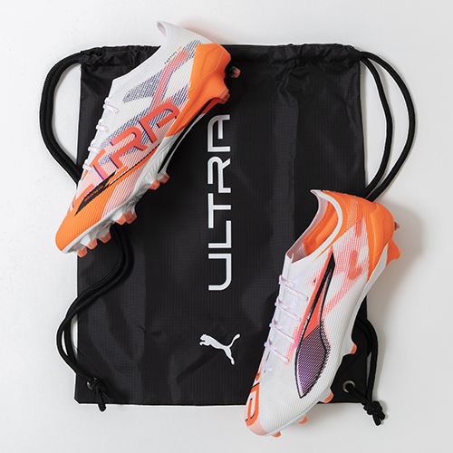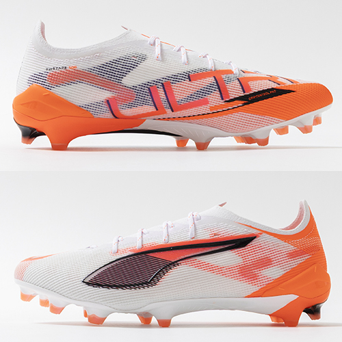 - 2025年1月16日(木)発売。春夏の新色コレクション「UNLIMITED(アンリミテッド)PACK」が登場。細心の調整を行ったF1カーのスピードと感覚を足元で体験する。PUMA『ULTRA(ウルトラ) 5』アルティメットモデルFG(ファームグラウンド)対応スパイク。