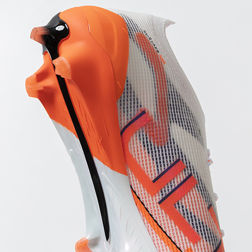 ●アッパーには軽量のエンジニアードメッシュアッパーを採用。編み込みのテンションや網目の大きさを効果的に調整し、耐久性が必要な部分は編み込みが強く、柔軟さが必要な部分は編み目を大きくしている。トップレイヤーに『GRIP CONTROL PRO』を使用し、極薄のマイクロファイバーで形成されるグリップアッパー素材をアッパー全面に覆ったことにより、スピードに乗った際のボールコントロール性を高めるだけでなく、シューズの保形性をサポート。また濡れたピッチでの水の浸透を軽減する効果もあり、常に軽量な状態のキープが可能。
