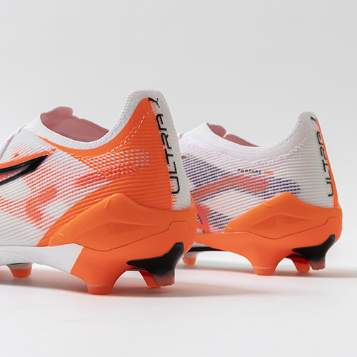 ●ULTRAの為に開発された、プーマ独自のアウトソール。軽量なPebaxをベースにピッチを掴み、そして強力な蹴り出しと加速力を生み出す革新的なスタッドシステムを採用。エネルギーリターンを最大化し、更なる加速を生み出す。学術的な研究から多くのテストを繰り返し開発されたT字型の『FastTrax』スタッドは、加速、ターン、クイックなフェイントに対して、最適な蹴りだしをもたらす。