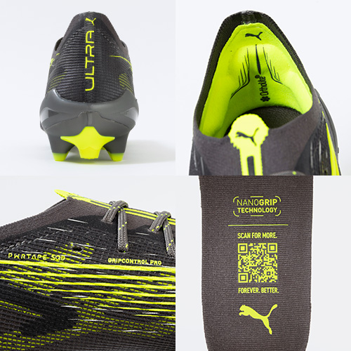 ●ULTRAの為に開発された、プーマ独自のアウトソール。軽量なPebaxをベースにピッチを掴み、そして強力な蹴り出しと加速力を生み出す革新的なスタッドシステムを採用。エネルギーリターンを最大化し、更なる加速を生み出す。学術的な研究から多くのテストを繰り返し開発されたT字型の『FastTrax』スタッドは、加速、ターン、クイックなフェイントに対して、最適な蹴りだしをもたらす。