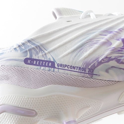 ●従来のKINGから更なるボールコントロール性を高める為、インサイド面のアッパーに凹凸の3D加工とボールグリップの為「GRIPCONTROL 3D」のPUプリントを搭載。中足部の甲周りを「EVO KNIT SOCK」構造でフィットさせることで、横の動きへのサポートを強め、前方向への屈曲時足とシューズの密着度をあげ推進力を高める効果を発揮。90分間いかなる場面でも高度のコントロールと精密なパスで好機を演出する。