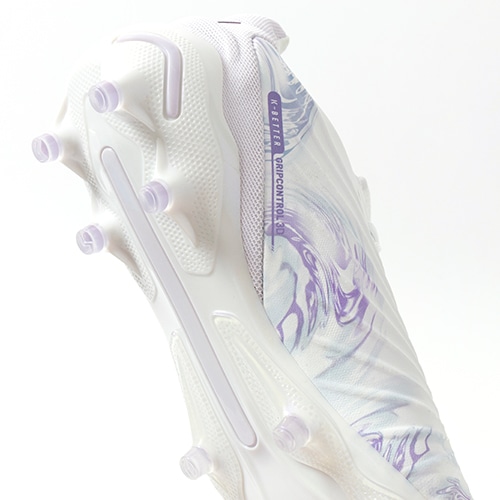 ●PebaxナイロンとPUで形成される軽量アウトソール。丸形のスタッドは様々動きにグリップ力を発揮し機動性を高める。中足部に配置されたシャンクが中足部の捻じれを抑制し力の分散を抑える効果をもたらす。アウトソールと一体となったヒールカウンターで踵のフィット感を高め、キック時の踏込みの安定感、様々なステップワーク時の踵のブレを抑制しする。