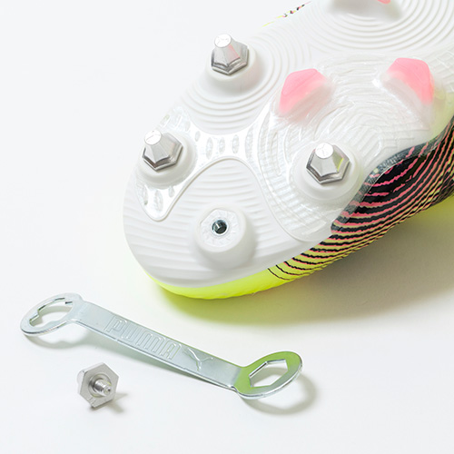 ●新しいスタッド形状、配置、向きと2つの高性能素材が組み合わせ開発されたNewアウトソール。全方向へのステップを強化し、360度の自由な動きを提供して俊敏性を高めます。6本取替えスタッド+5本固定スタッドのミックスソールを採用。