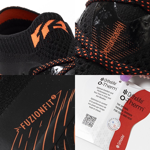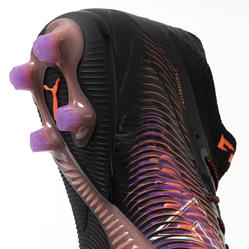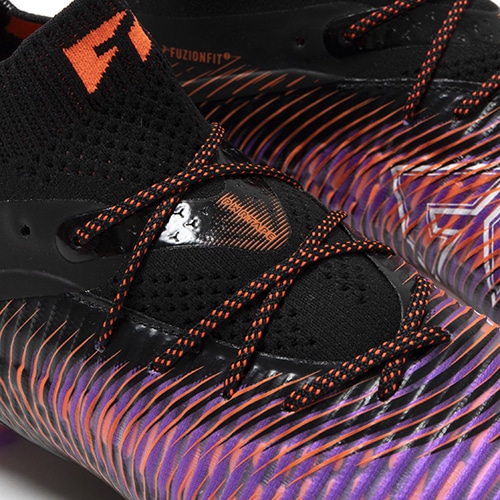 ●伸縮性の高いLYCRAと伸縮性に優れたニットで構成されたシューズのベースレイヤーは、第二の皮膚として機能し、足の動きに密着し、さらに適応性とサポート力のあるフィット感を実現します。複数に独立した3D PODSは、足の動きに沿いつつ全ての動きに対して、FUSION SKIN(フュージョン スキン)が足に沿うつくりになっています。また3D仕様のPODSがボールタッチ時の足のサポートをもたらします。