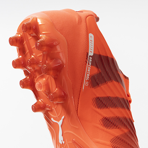 ●従更なるボールコントロール性を高める為、インサイド面のアッパーに凹凸の3D加工とボールグリップの為「GRIPCONTROL 3D」のPUプリントを搭載。中足部の甲周りを「EVO KNIT SOCK」構造でフィットさせることで、横の動きへのサポートを強め、前方向への屈曲時足とシューズの密着度をあげ推進力を高める効果を発揮。90分間いかなる場面でも高度のコントロールと精密なパスで好機を演出する。