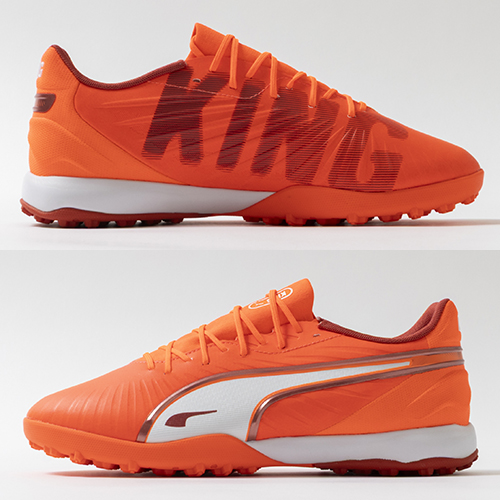 - 2025年1月16日(木)発売。春夏の新色コレクション「UNLIMITED(アンリミテッド)PACK」が登場。更なるボールコントロールと快適性を追求したPUMA「KING(キング)」のマッチモデルTT(ターフトレーニング)対応トレーニングシューズ。