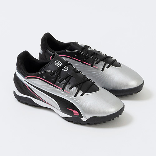 - 2025年4月10日(木)発売。春夏の新色コレクション「AUDACITY(オーダシティ) PACK」が登場。更なるボールコントロールと快適性を追求したPUMA「KING(キング)」のマッチモデルTT(ターフトレーニング)対応ジュニア用トレーニングシューズ。