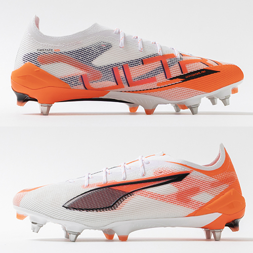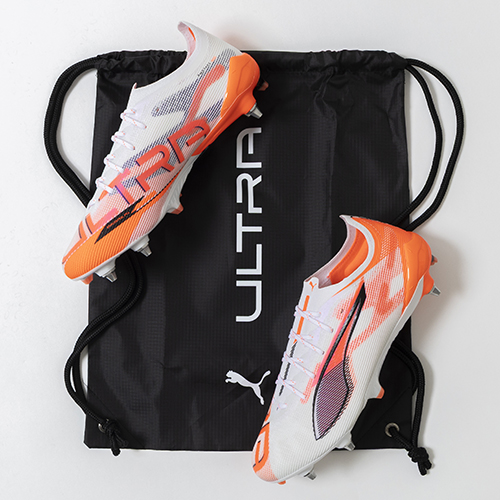 - 2025年1月16日(木)発売。春夏の新色コレクション「UNLIMITED(アンリミテッド)PACK」が登場。細心の調整を行ったF1カーのスピードと感覚を足元で体験する。PUMA『ULTRA(ウルトラ) 5』アルティメットモデルSG(ソフトグラウンド)対応ミックスソール取り換え式スパイク。