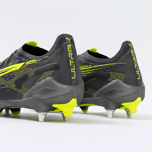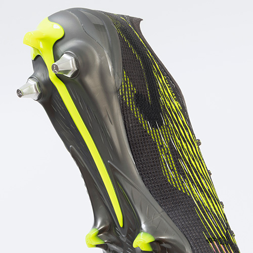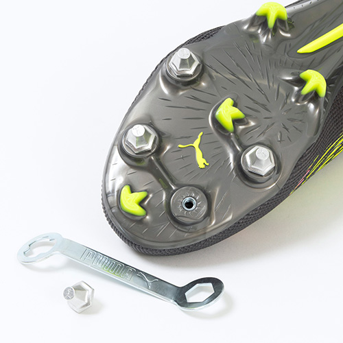 ●ULTRAの為に開発された、プーマ独自のアウトソール。軽量なPebaxをベースにピッチを掴み、そして強力な蹴り出しと加速力を生み出す革新的なスタッドシステムを採用。エネルギーリターンを最大化し、更なる加速を生み出す。学術的な研究から多くのテストを繰り返し開発されたT字型の『FastTrax』スタッドは、加速、ターン、クイックなフェイントに対して、最適な蹴りだしをもたらす。6本取替えスタッド+5本固定スタッドのミックスソールを採用。
